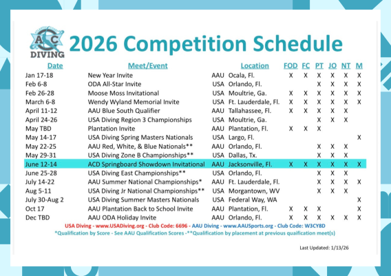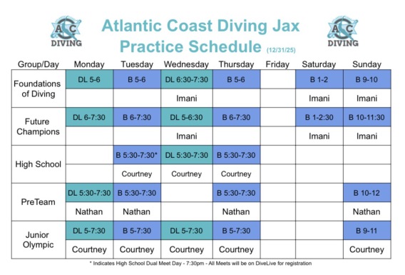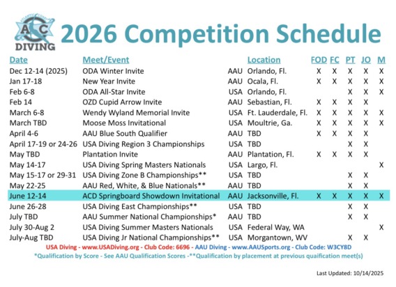 We are excited to announce that we will have meets this year! Please check out the schedule below for more information. Meet registration can be found on the Club Assistant Login Portal.